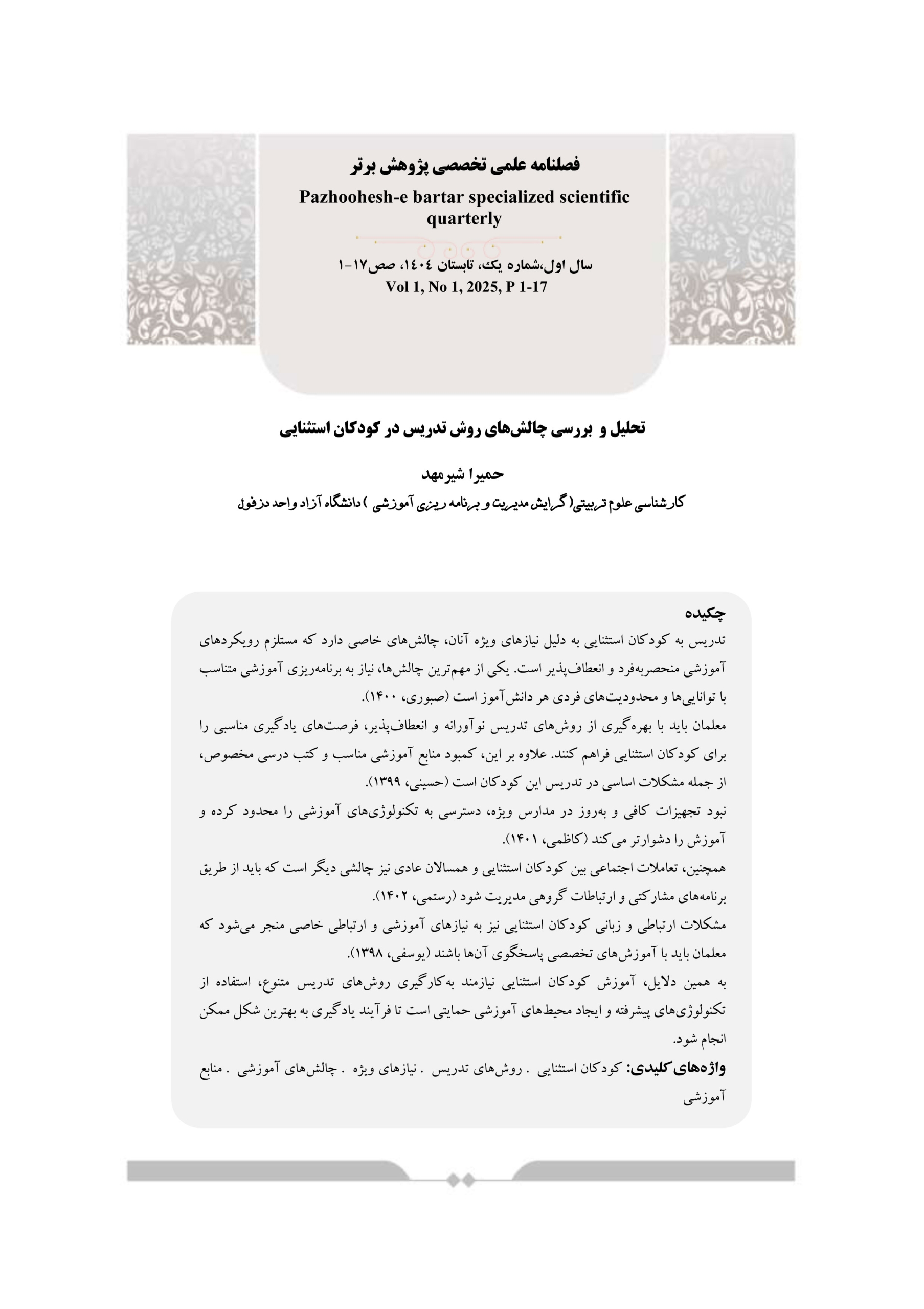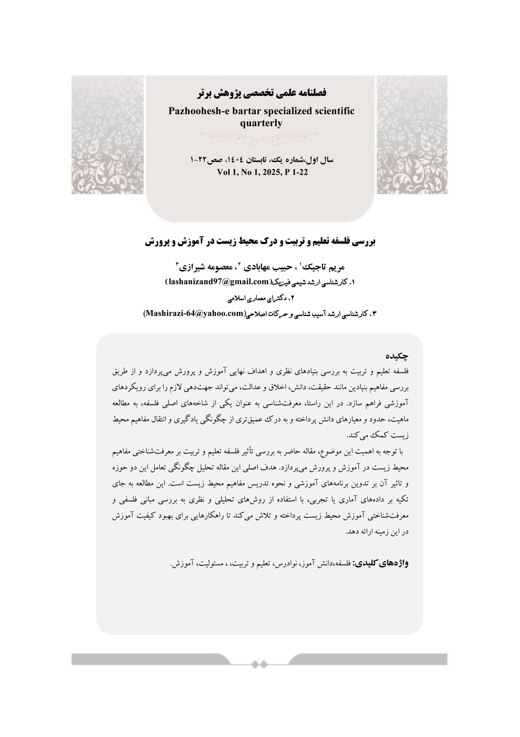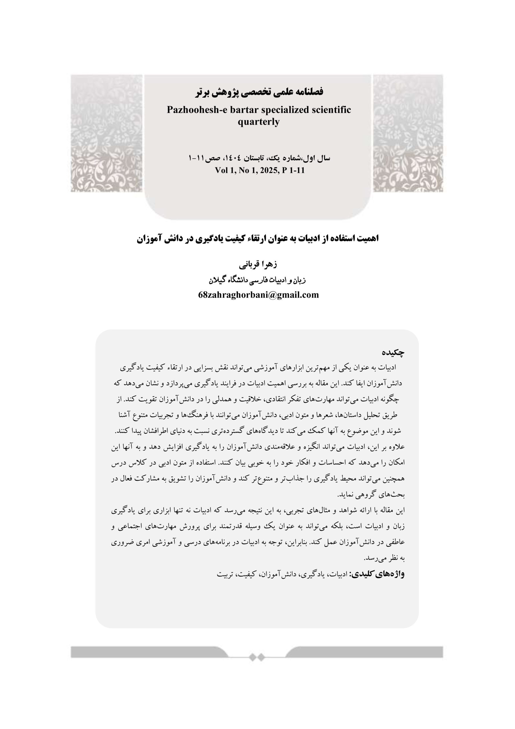 نوع دسترسی: دسترسی آزاد به مقالات نشریه « فصلنامه علمی تخصصی پژوهش برتر » بر اساس مجوز کرییتیو کامنز (CC BY-NC)