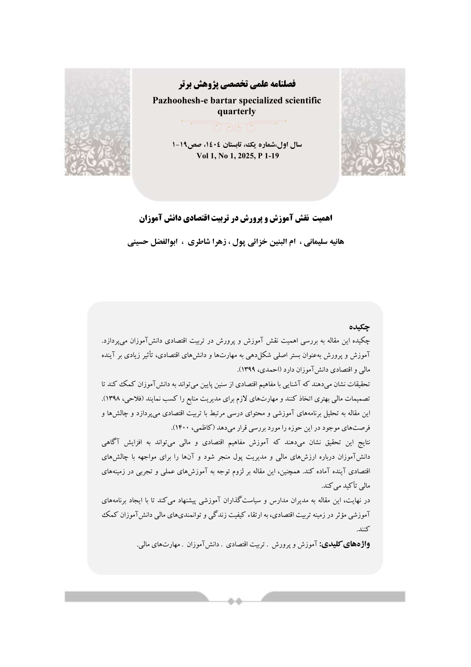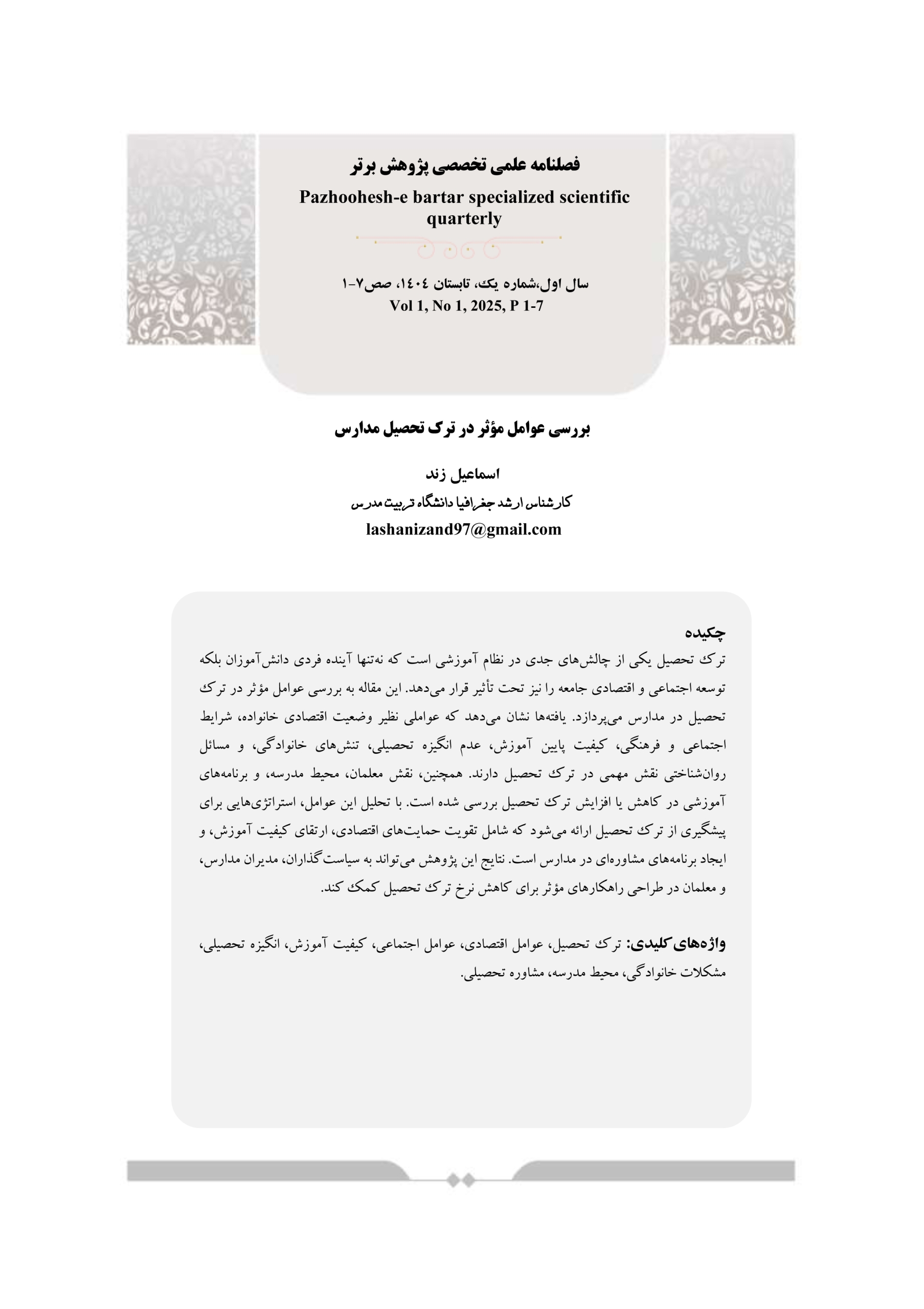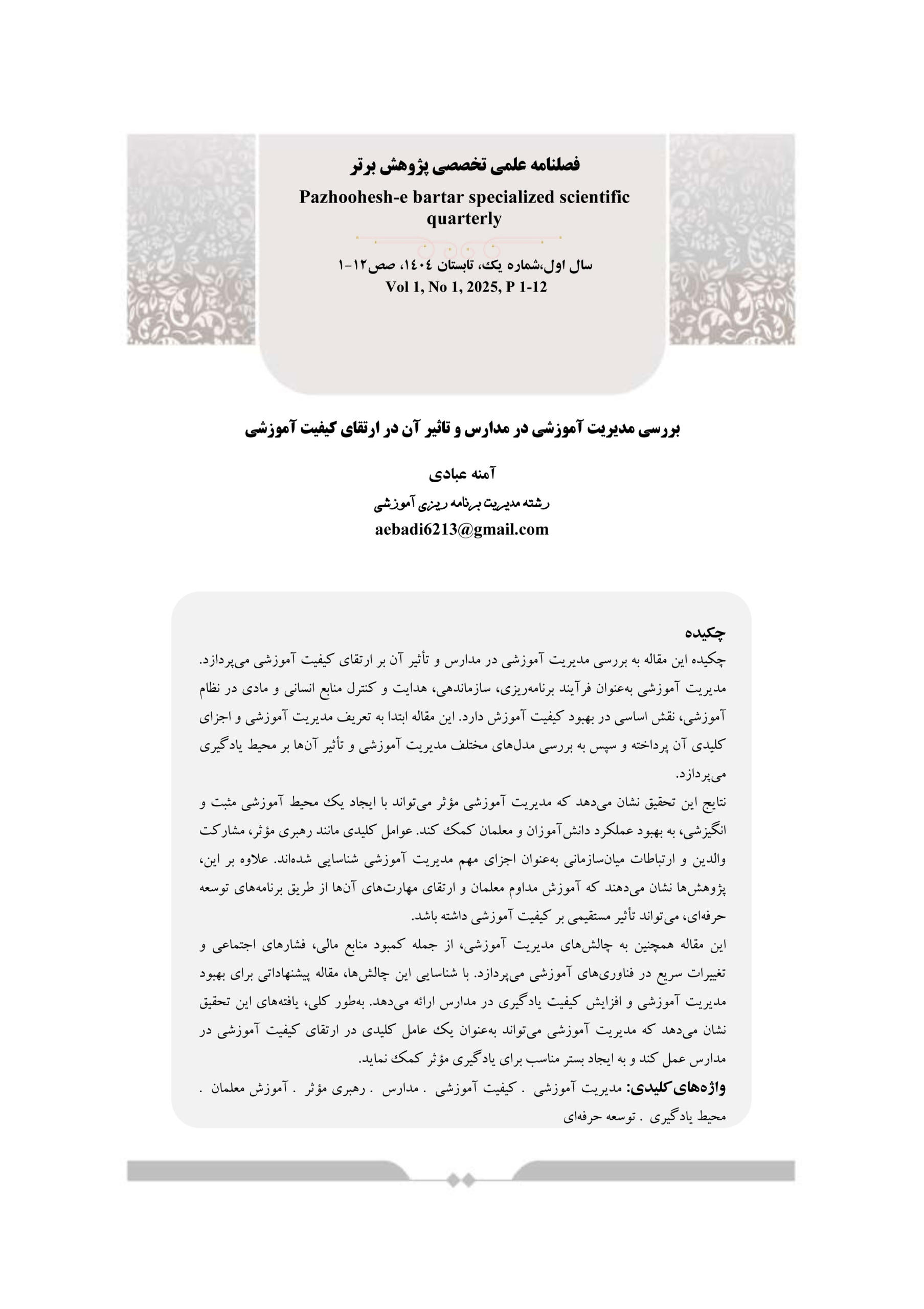 نوع دسترسی: دسترسی آزاد به مقالات نشریه « فصلنامه علمی تخصصی پژوهش برتر » بر اساس مجوز کرییتیو کامنز (CC BY-NC)