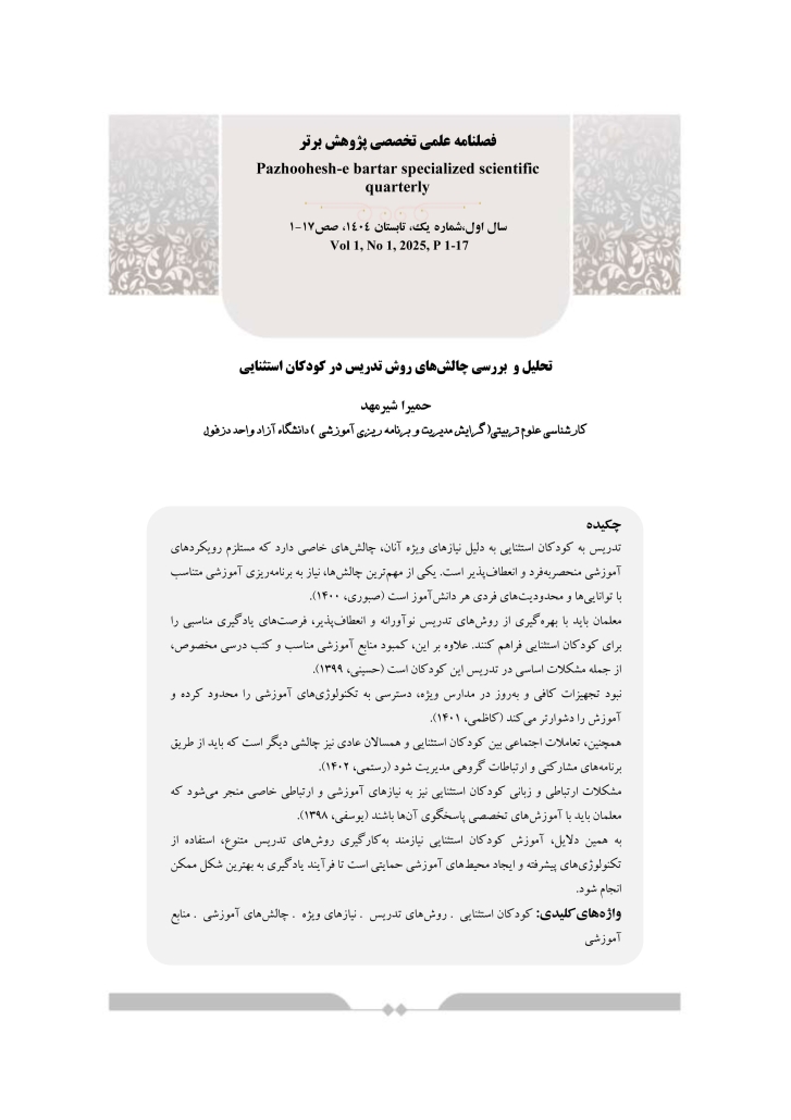 سال اول ، شماره 7 تابستان 1404دانلود فصل نامه PDF دانلود فایل تحلیل و بررسی چالشهای روش تدریس در کودکان استثنایی https://pazhooheshebartar.ir/wp-content/uploads/2025/11/00000-scaled.jpg 2560 1807 2025-11-24 12:03:132025-11-24 12:03:37سال اول ، شماره 7 تابستان 1404